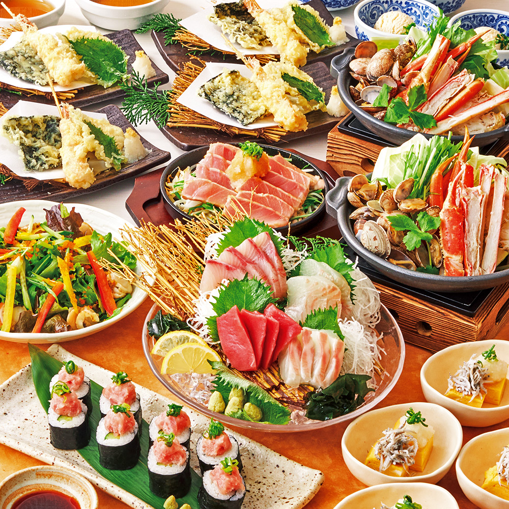 <横断幕特典>【歓送迎会】日~木は更にお得!本ズワイ蟹や天ぷら盛合せ8品+飲み放題付6500円