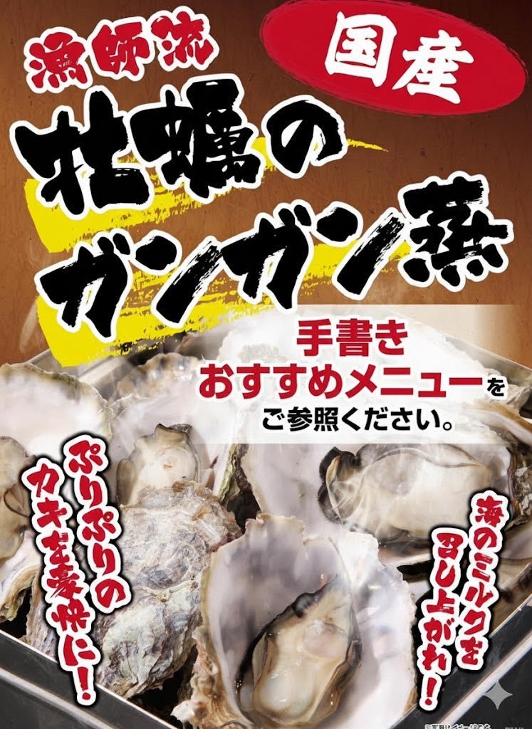 冬季限定!新鮮な長崎小長井産の牡蠣を豪快に蒸し上げた「牡蠣のガンガン蒸し」が登場!立ちのぼる湯気とともに広がる磯の香りは食欲をそそらせます。ふっくらプリプリに蒸し上がった牡蠣は、濃厚な旨味とミルキーなコクがたまらない逸品です。