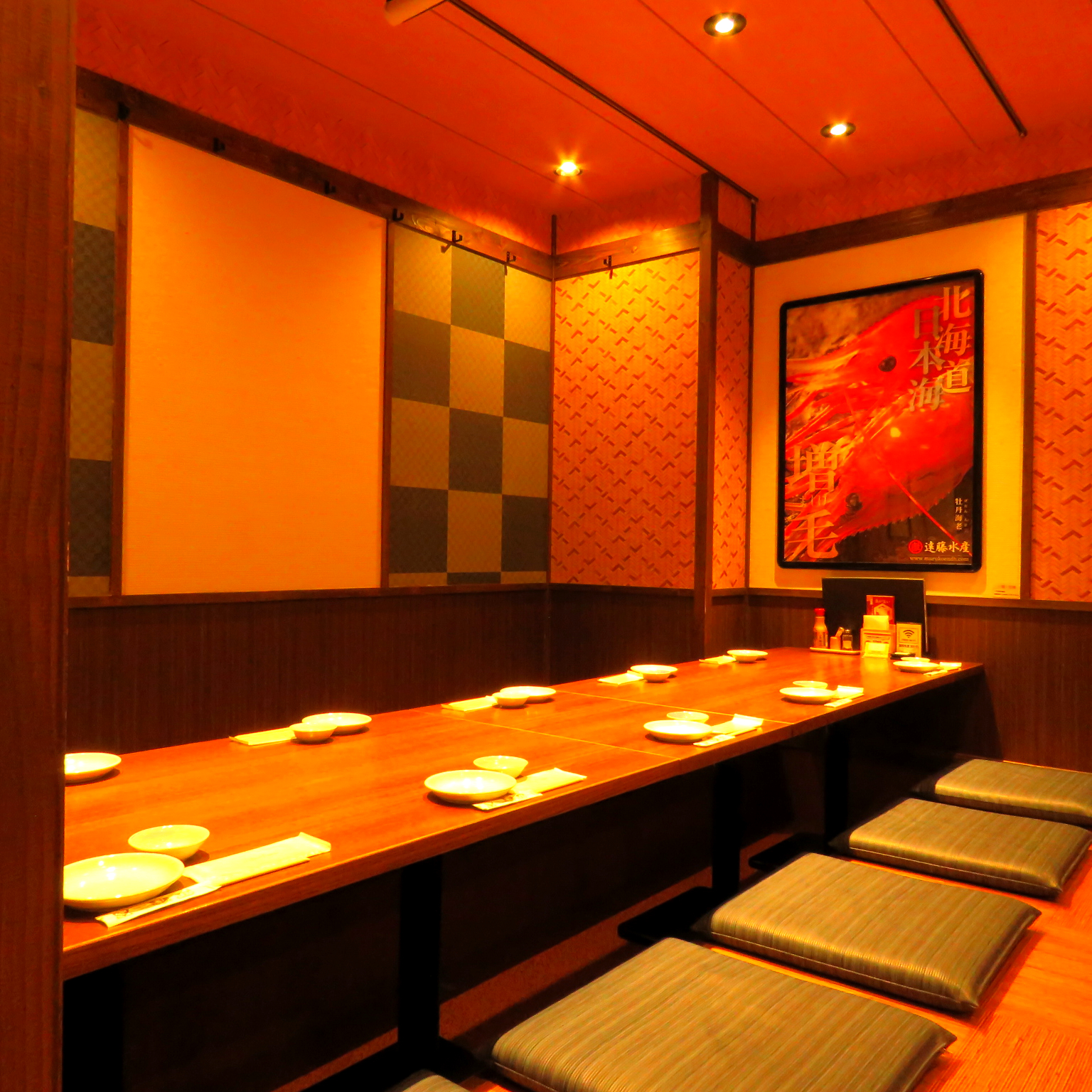 【大小さまざまなお席をご用意】店内は温かみのある明かりで雰囲気抜群♪気の合うお友達との飲み会や女子会などに是非ご利用ください。お席は人数に合わせてご用意できます。ご相談ください!新鮮な海の幸を味わいながら、ゆったりとおくつろぎください。