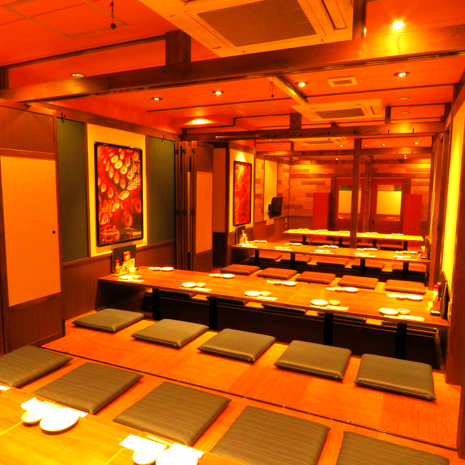 【最大45名様までご利用可能】<10名以上・20名以上・30名以上用途に応じた個室有>掘りごたつのお座敷をはじめ、人数や用途に合わせたお席をご用意可能です。忘年会、新年会など各種会社宴会や、同窓会、二次会など様々なシーンにご利用いただけます。大人数でのご宴会や貸し切りもお気軽にご相談ください。